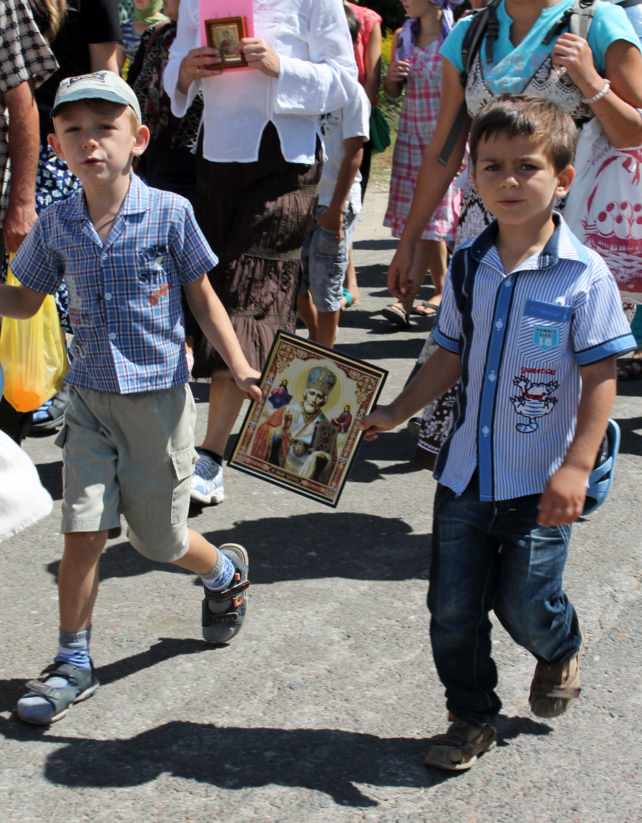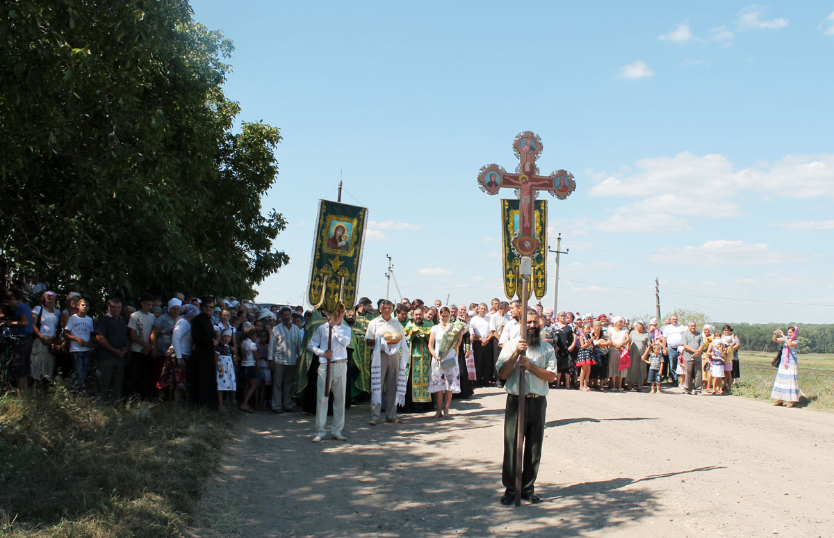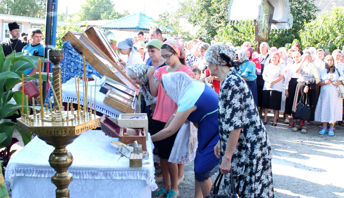 Receiving the blessing, the pilgrims, headed by the Hierarch, started off, with church banners and crosses, with icons and relics of Saints. They walked 12 km towards the village of Olanesti, where they were greeted by numerous priests from Stefan Voda and Causeni church deaneries, local public authorities, and villages inhabitants.